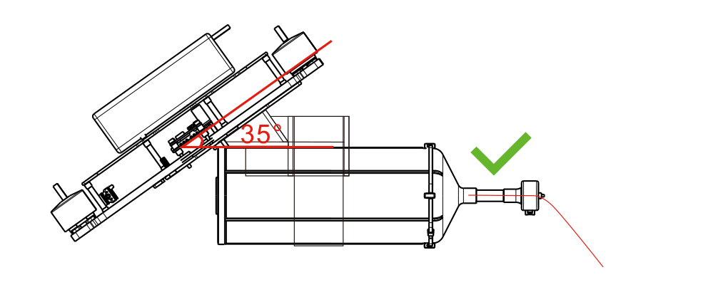 Fiberoptisk diskinstallation bör baseras på flygplanets lutningsvinkel, monteringsfästet ska reserveras för en viss vinkel (som visas i figuren). Installation Monteringsvinkeln ska vara nära lutningsvinkeln, så att den fiberoptiska skivvinkeln är horisontell.