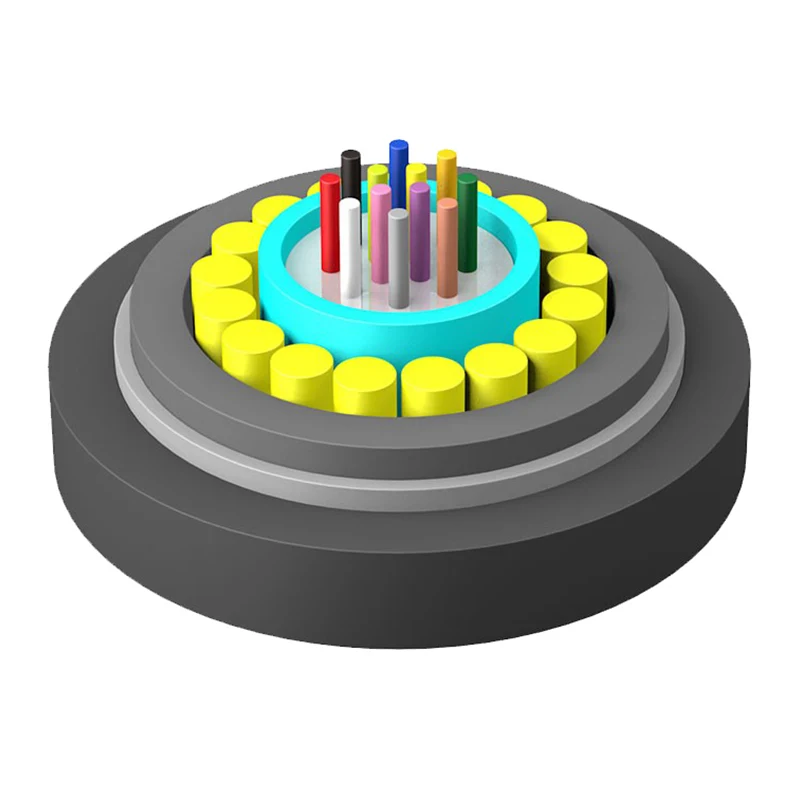 Strukturen för uni-röret som inte är metalliskt 73 mantel lätt belysning Anti-ruttande fiberoptisk kabel är att sätta en enda läge optisk fiber eller multi-läge optisk fiber i ett löst rör med högt modulpolyestermaterial, och röret är fyllt med vattentät förening. Vattenblockeringsmaterial tillsätts till det lösa röret för att säkerställa den vattentäta prestanda för den optiska kabeln. Det lösa röret är lindat med FRP -stång, och ett skikt av polyeten innermantel extruderas på kabelkärnan. Efter att FRP -bältet är i längdriktning, extruderas en polyeten yttre mantel för att bilda en kabel.